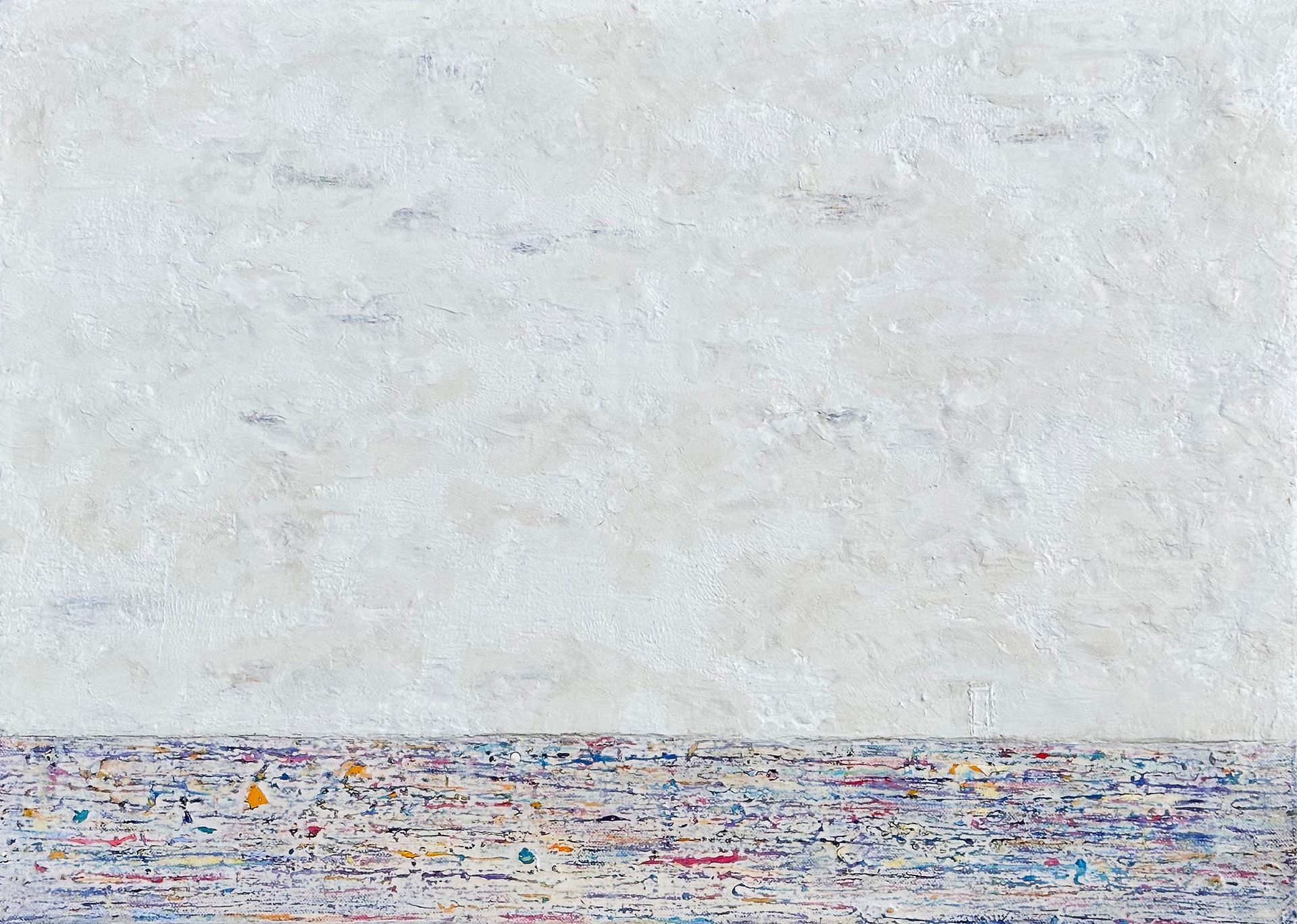 a blend of textured abstraction and profound emotional resonance. Each piece is deeply rooted in themes of resilience, belonging, and transformation, weaving together personal experiences with universal human stories.